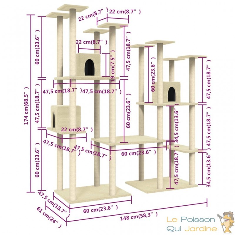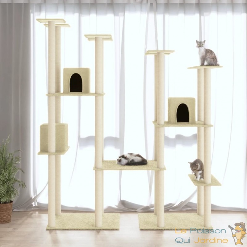 Cet arbre à chat offre l'endroit idéal pour que vos chats puissent satisfaire leurs instincts naturels en matière de grattage, d'escalade, de perchoir, de cachette et de repos. Conçu avec des poteaux en sisal naturel, résistants et robustes, cet arbre prévient également les dommages potentiels que vos chats pourraient causer à vos meubles tout en encourageant une activité physique saine, particulièrement précieuse pendant les mois d'hiver lorsque vos compagnons félins passent plus de temps à l'intérieur.