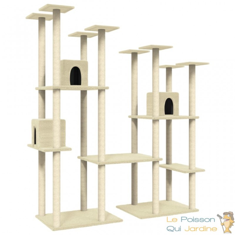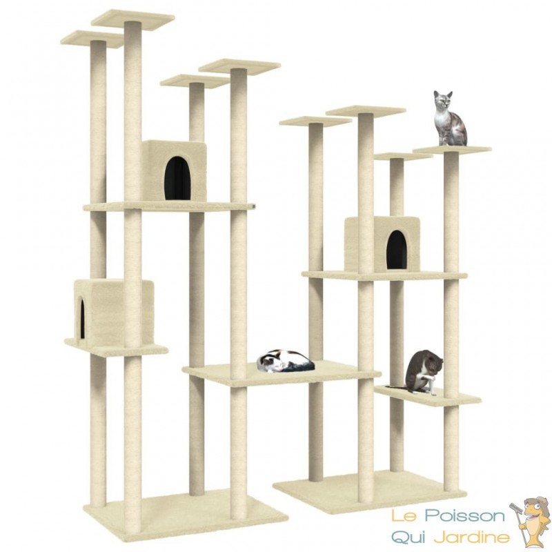 Les poteaux en sisal offrent une surface idéale pour que vos chats chérissent leur instinct de grattage. Leur texture résistante et solide garantit une durabilité maximale. De plus, les multiples niveaux et plates-formes de cet arbre à chat offrent une variété d'utilisations. Vos chats peuvent s'amuser en se poursuivant tout en sautant d'un niveau à l'autre, favorisant ainsi l'exercice et la stimulation mentale.
