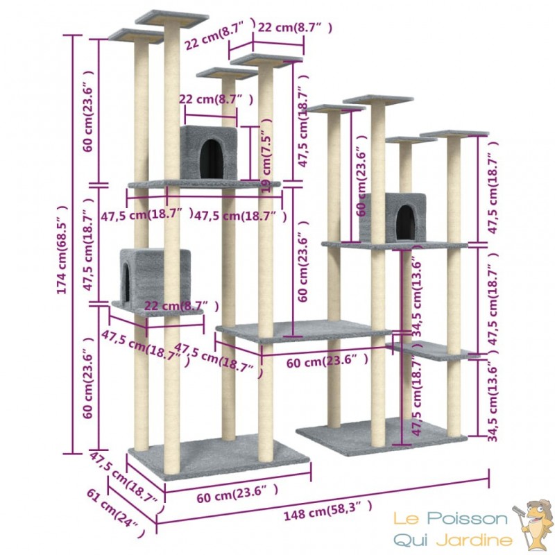 En stimulant l'instinct de jeu et d'exploration de vos félins, cet arbre à chat contribue également à favoriser leur bien-être mental en leur offrant des opportunités d'activité physique et de divertissement. Avec ses poteaux en sisal et ses multiples niveaux, cet arbre à chat devient un élément essentiel de l'environnement de jeu de vos chats, leur offrant un espace dédié où ils peuvent s'amuser, se détendre et exprimer leur nature féline.