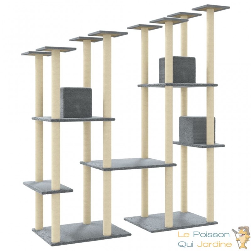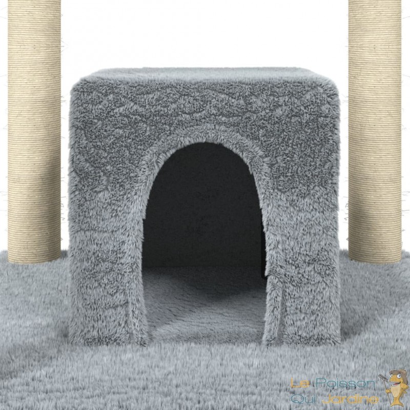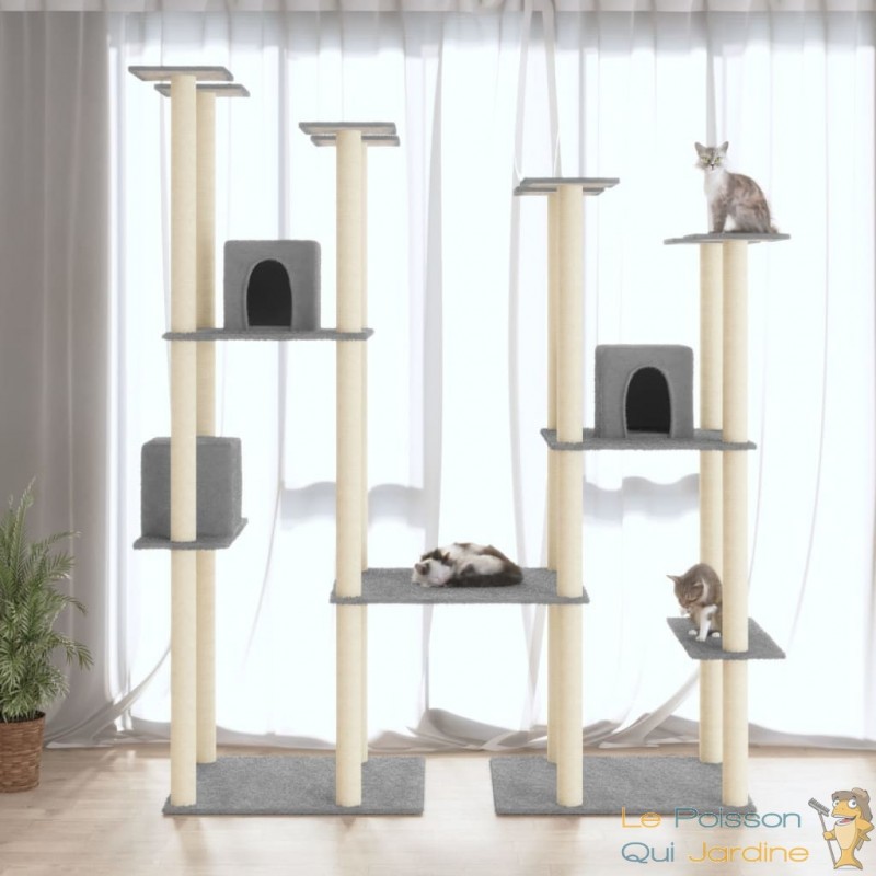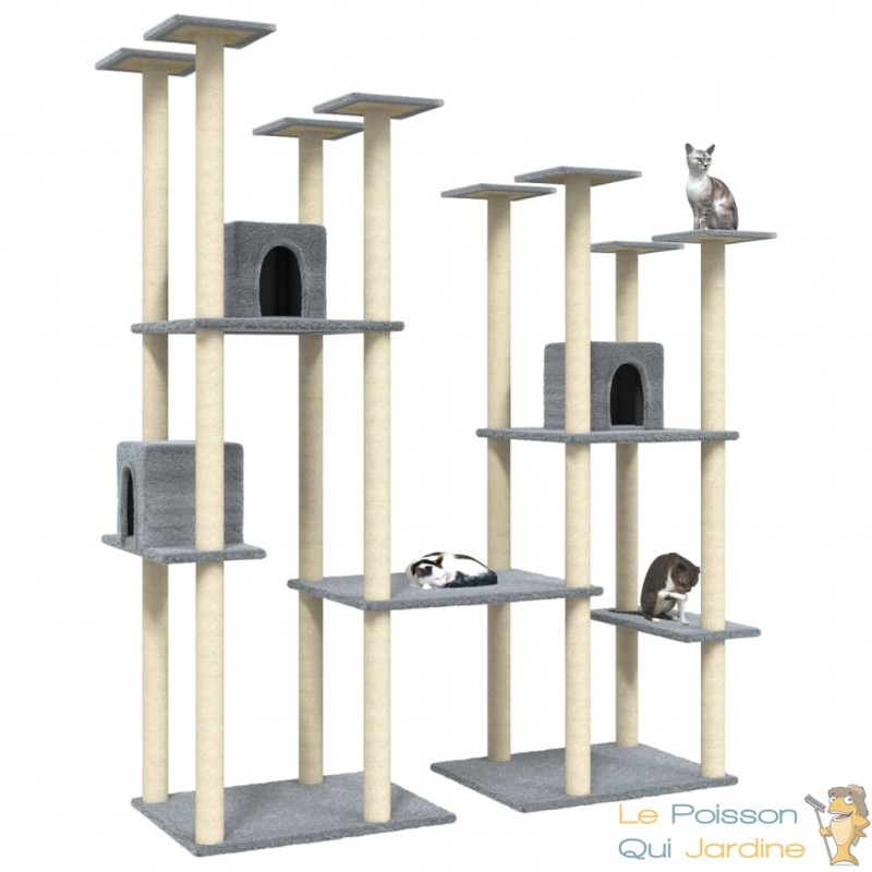 Les poteaux en sisal de cet arbre à chat fournissent une surface parfaite pour que vos précieux compagnons expriment leur instinct naturel de grattage. La texture robuste et résistante du sisal assure une durabilité maximale, résistant aux assauts répétés des griffes de vos félins.