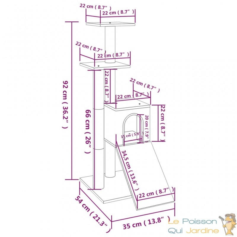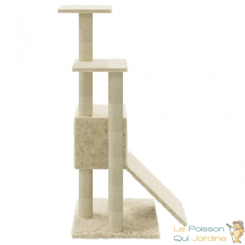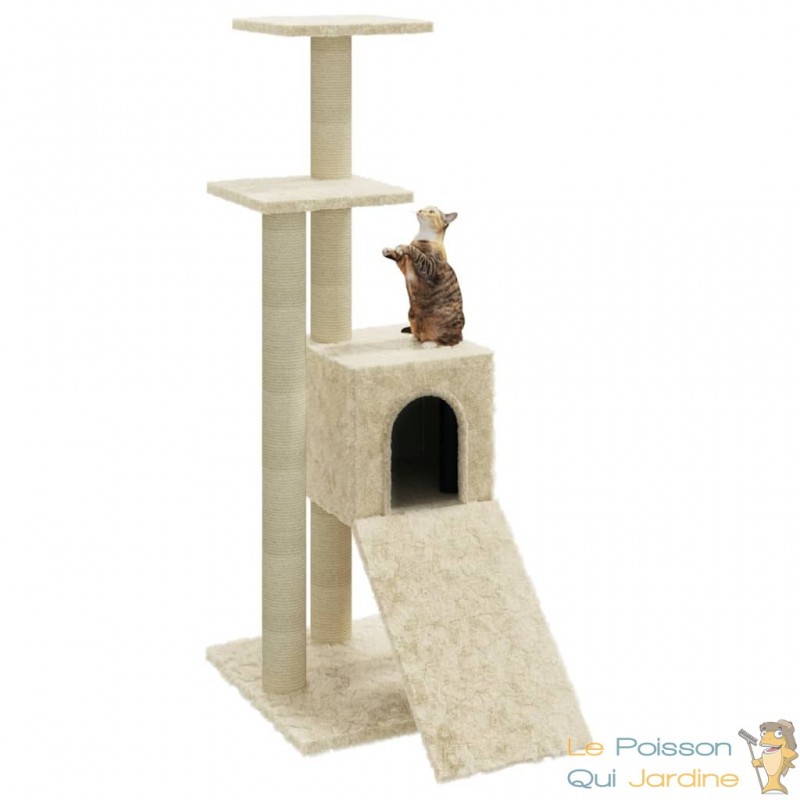 Doté de poteaux enveloppés de corde de sisal, il répond à leur besoin instinctif de grattage tout en préservant vos meubles. Ces poteaux ne sont pas seulement fonctionnels, ils offrent également une surface de jeu verticale où vos chats peuvent s'étirer et se dépenser, satisfaisant ainsi leur désir inné de mouvement.