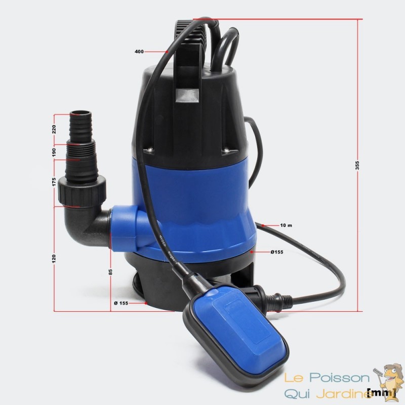 Elle possède aussi un sécurité contre la surchauffe du moteur. En effet, si le moteur surchauffe, la pompe se coupera automatiquement. Le flotteur ( fourni avec la pompe vide caves ) servira d'interrupteur marche/arrêt quant à l'eau entourant la pompe et devant être drainée, elle servira de moyen de refroidissement du moteur de la pompe vide caves.