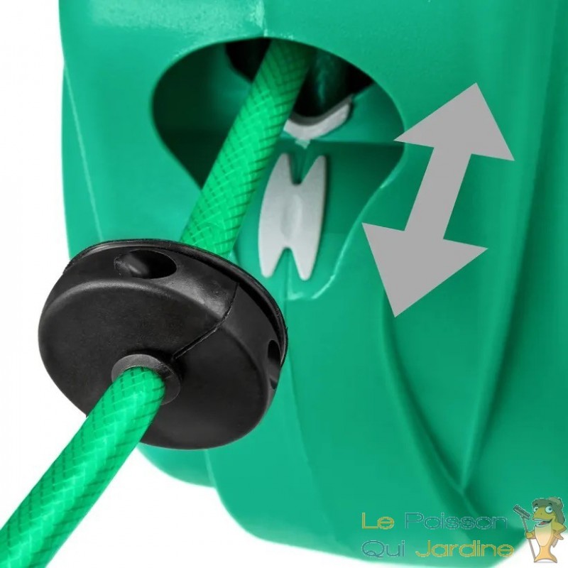 Grâce à ce dévidoir, vous n'aurez plus à vous fatiguer à arroser votre jardin ou à démêler le tuyau. Son mécanisme de déroulage facile et ses crans d'arrêt vous permettent d'avoir toujours la bonne longueur de tuyau à portée de main, sans avoir à tirer sur un tuyau encombrant.