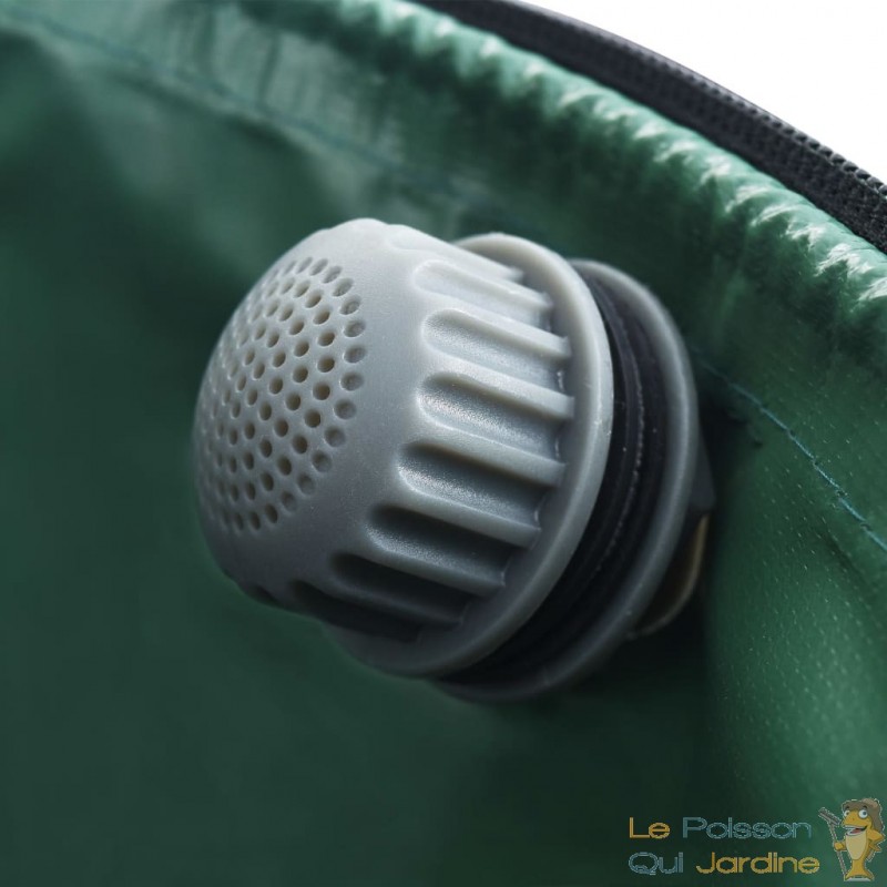 Les filtres à mailles intégrés aux entrées et sorties du réservoir assurent que l'eau de pluie capturée est débarrassée des impuretés et des débris, garantissant ainsi une qualité d'eau optimale pour une utilisation dans diverses applications, telles que l'irrigation du jardin ou le remplissage des réservoirs de chasse d'eau.
