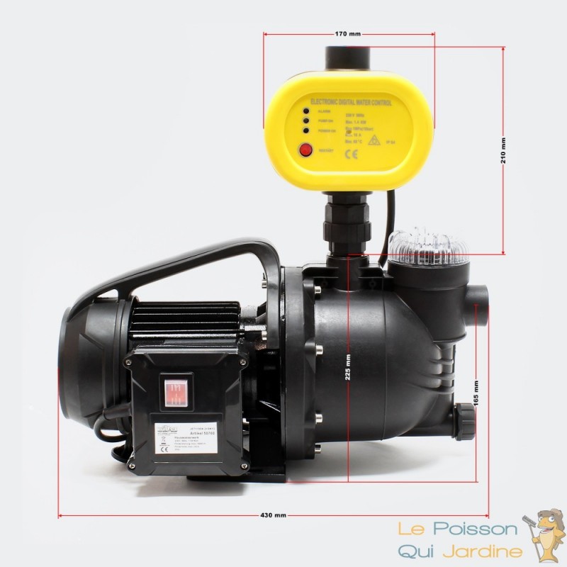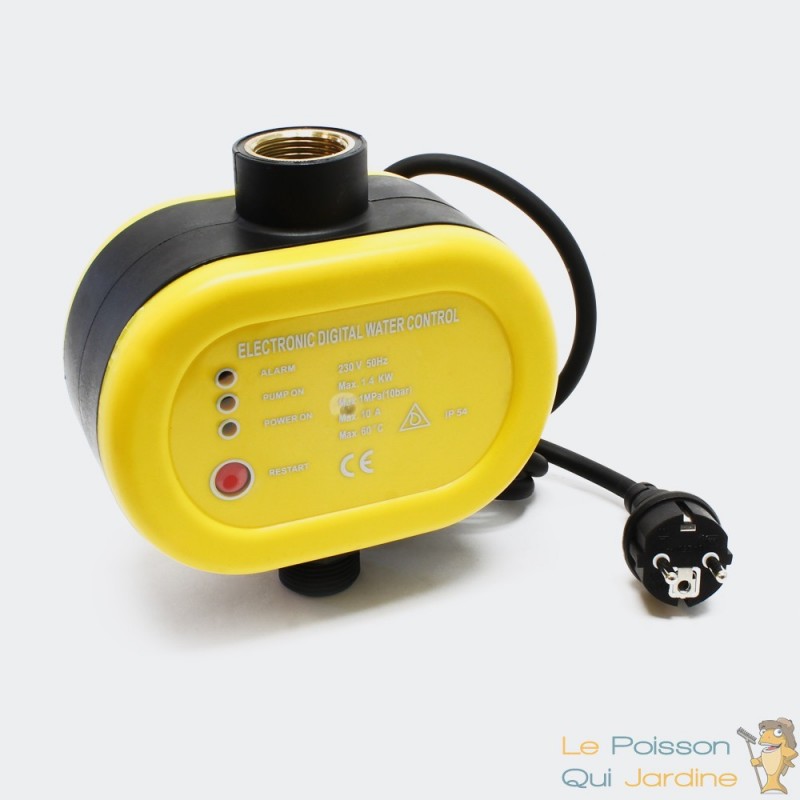 Notre pompe à eau est livrée avec un pressostat. Le pressostat est un contrôleur électronique et digital afin de pouvoir régler votre pompe à eau automatiquement.