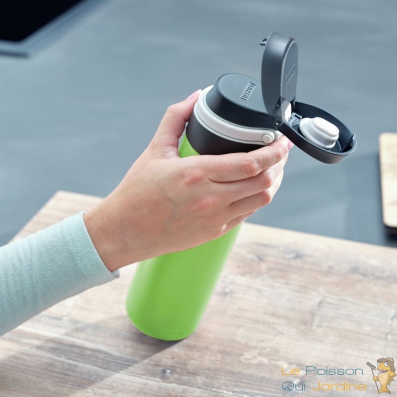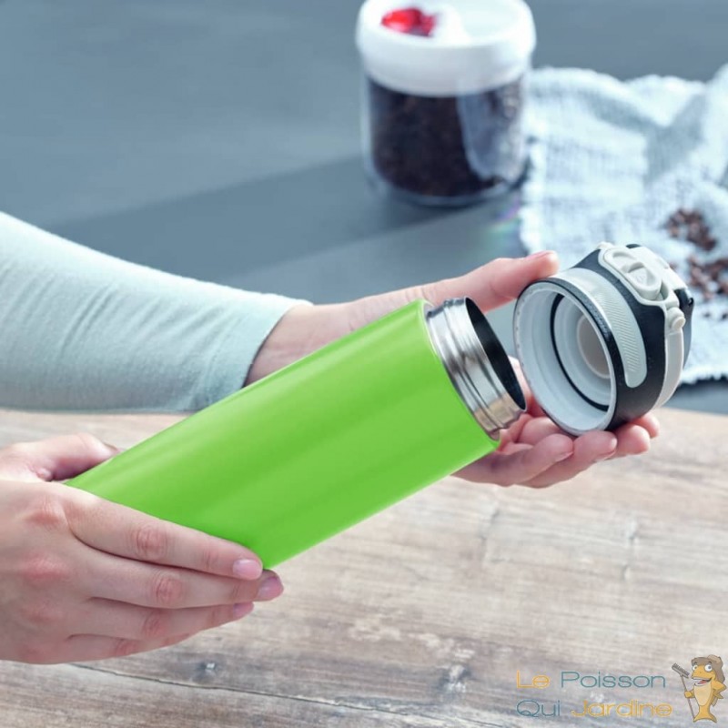 Avec son mélange d'acier inoxydable raffiné et de couleur vive , la bouteille thermos de 600 ml attire les regards.