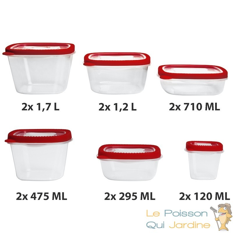 Les boîtes de conservation sont proposées en six tailles variées, conçues pour être compatibles avec le micro-ondes, le lave-vaisselle et le congélateur. Cette polyvalence vous offre la possibilité de stocker et de manipuler vos aliments de manière individuelle avec une grande facilité. Que ce soit pour réchauffer vos repas au micro-ondes, faciliter le nettoyage au lave-vaisselle, ou conserver vos denrées au congélateur, ces boîtes sont adaptées à toutes ces utilisations. Cette diversité de tailles vous permet également d'organiser efficacement vos provisions en fonction de vos besoins spécifiques, offrant ainsi une solution pratique et fonctionnelle pour la gestion de vos aliments au quotidien.