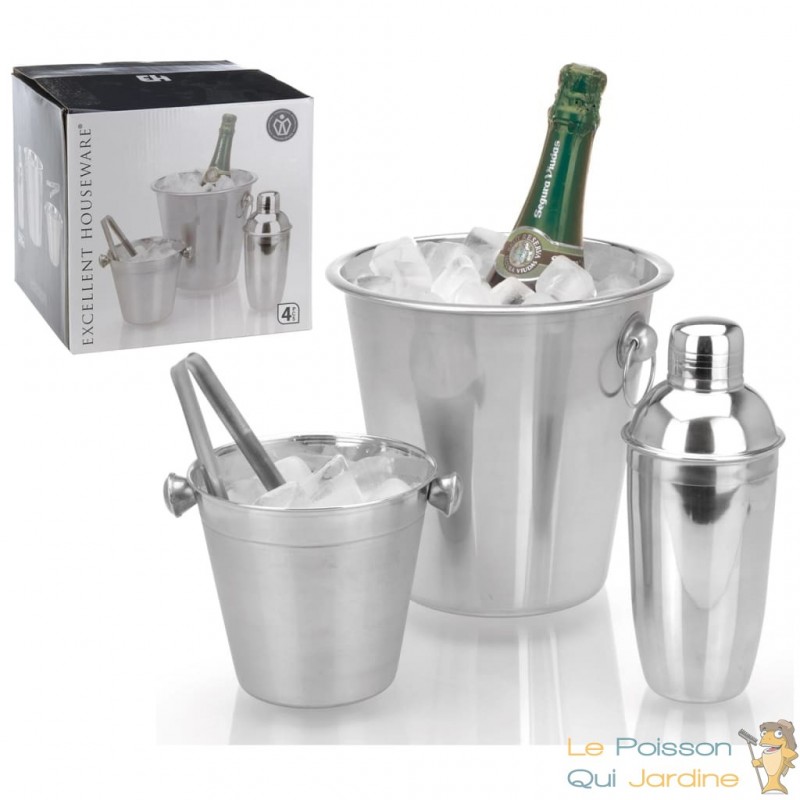 Ce pratique ensemble de cocktail se distingue par son refroidisseur de champagne, son seau à glace, ainsi qu'un shaker de 500 ml équipé d'un filtre, d'un couvercle et d'une pince à glace. Ces éléments essentiels garantissent que vous disposez de tout ce dont vous avez besoin pour créer des cocktails professionnels dans le confort de votre propre bar.
