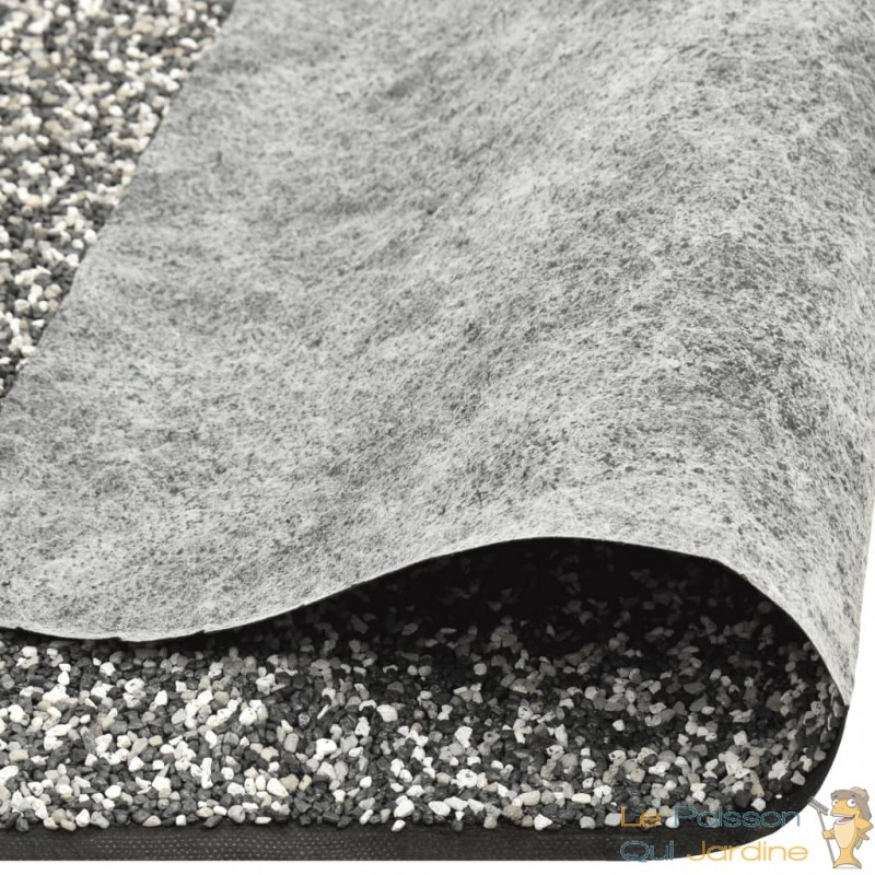 Le revêtement, habillé de gravier fin, s'intègre harmonieusement dans son environnement, créant ainsi un aspect naturel et authentique. Sa polyvalence est renforcée par sa capacité à être facilement découpé avec des ciseaux, permettant ainsi une adaptation précise aux dimensions spécifiques de chaque étang, quelle que soit sa forme ou sa taille.