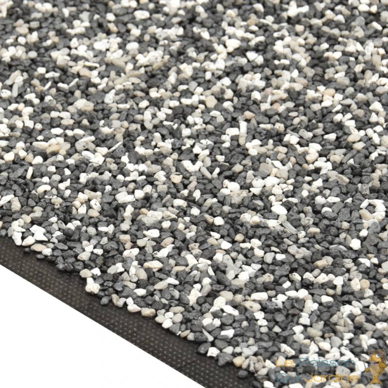 Le revêtement, habillé de gravier fin, s'intègre harmonieusement dans son environnement, créant ainsi un aspect naturel et authentique. Sa polyvalence est renforcée par sa capacité à être facilement découpé avec des ciseaux, permettant ainsi une adaptation précise aux dimensions spécifiques de chaque étang, quelle que soit sa forme ou sa taille.