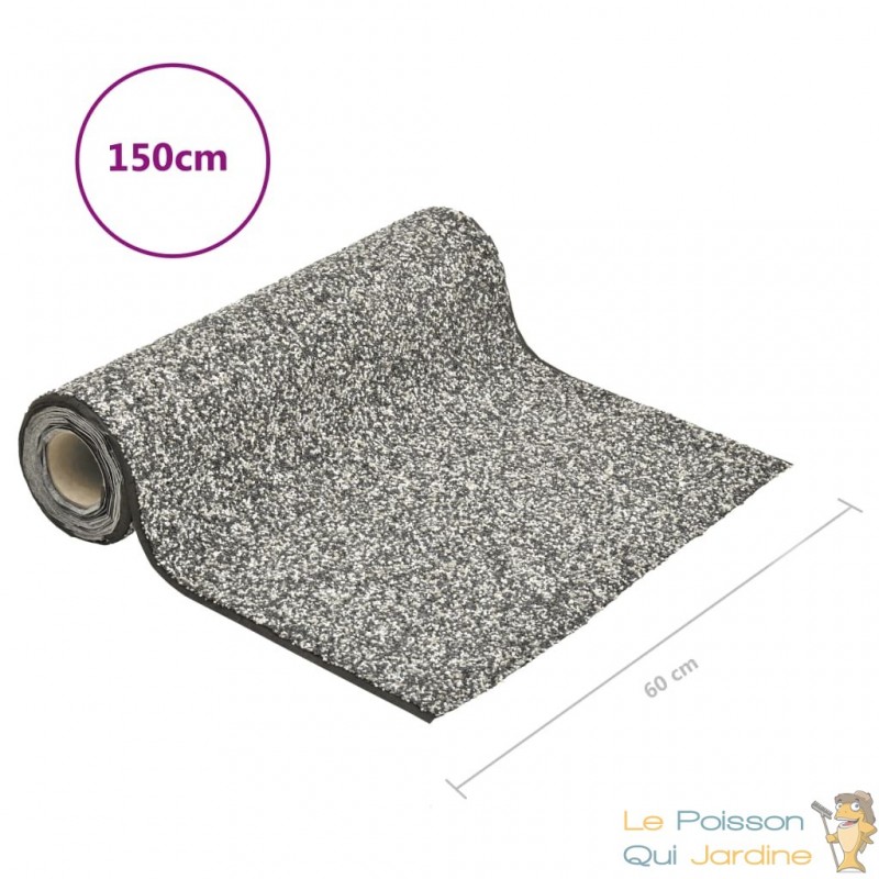 Le revêtement, habillé de gravier fin, s'intègre harmonieusement dans son environnement, créant ainsi un aspect naturel et authentique. Sa polyvalence est renforcée par sa capacité à être facilement découpé avec des ciseaux, permettant ainsi une adaptation précise aux dimensions spécifiques de chaque étang, quelle que soit sa forme ou sa taille.