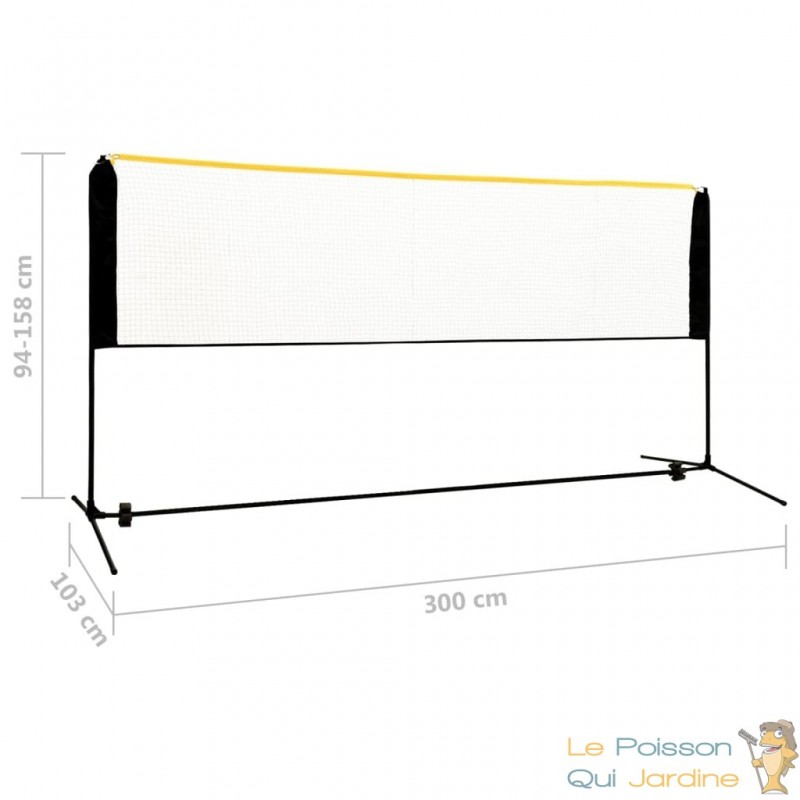 Le filet lui-même est fabriqué en polyéthylène de haute qualité, réputé pour sa résistance et sa durabilité. Les mailles du filet sont suffisamment petites pour empêcher le volant de passer à travers, assurant ainsi des parties de badminton fluides et agréables.