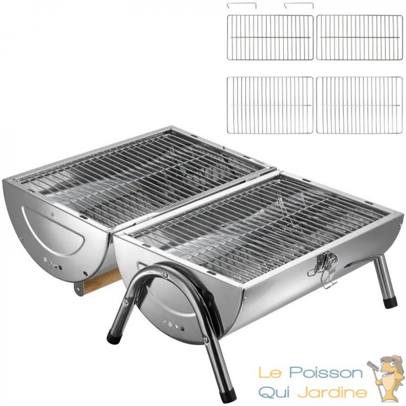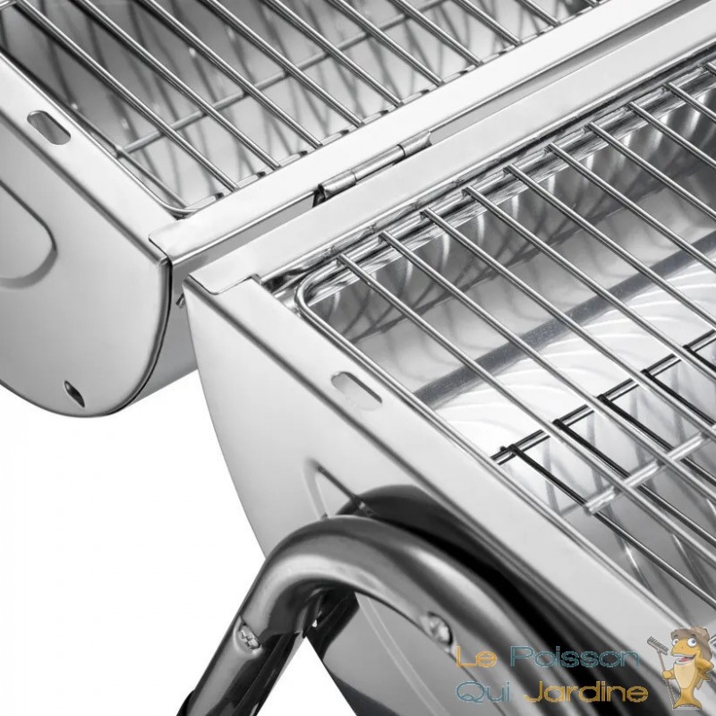 En résumé, le barbecue portable en acier inoxydable est un choix idéal pour les amateurs de plein air qui souhaitent profiter de délicieuses grillades partout où ils vont. Avec sa facilité de transport, sa grande surface de grillade double, sa flexibilité de cuisson, sa poignée pratique, son montage et démontage rapides, ainsi que son design de qualité, il vous permettra de savourer des repas savoureux en plein air avec facilité et style.