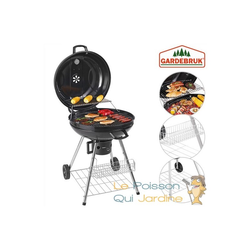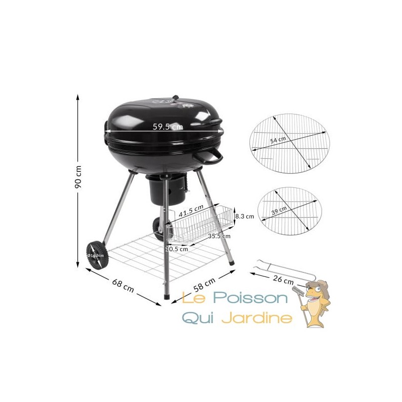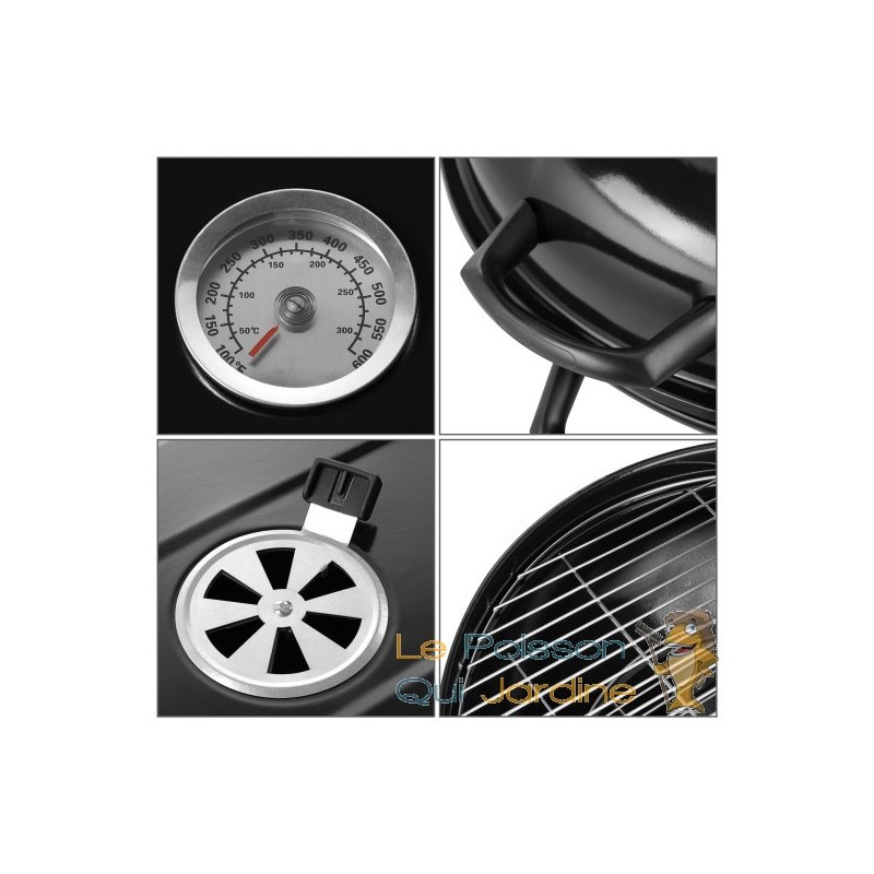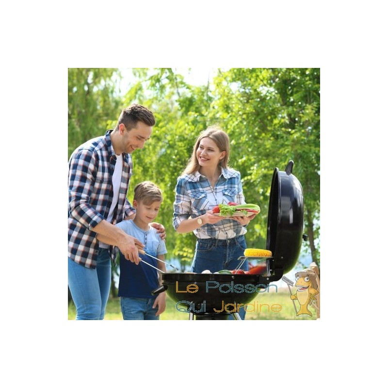 Rangement pratique : Le barbecue est équipé d'un panier de rangement et d'une surface de rangement, offrant suffisamment d'espace pour stocker du charbon, des aliments et des ustensiles de barbecue. Le couvercle est amovible et une poignée facilite le transport du barbecue vers l'endroit désiré.