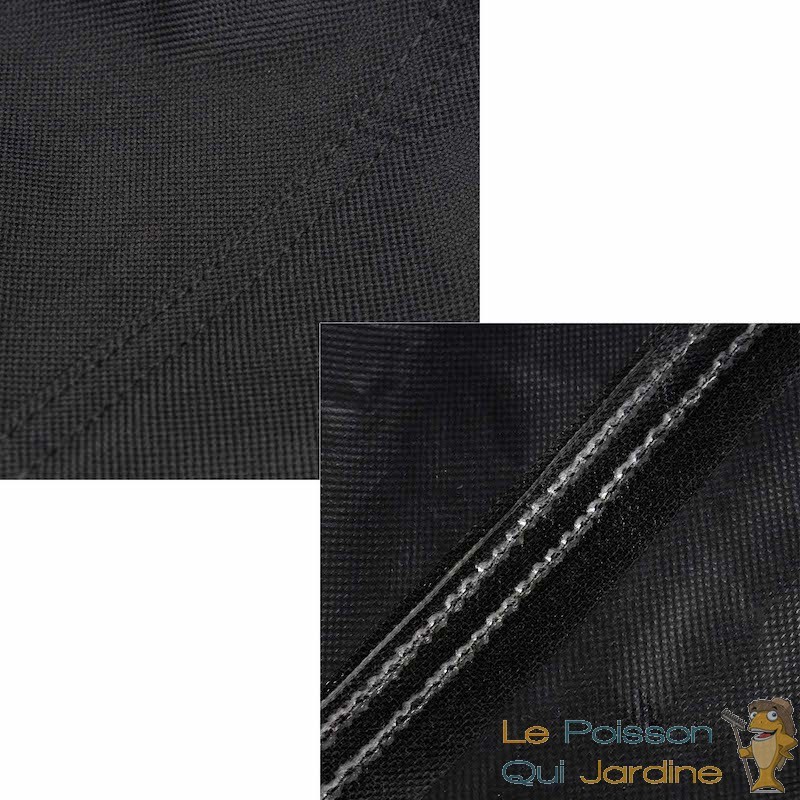 Couture double : La housse est dotée d'une couture double, ce qui renforce sa solidité et sa durabilité. Cette couture solide assure une meilleure résistance aux déchirures et aux dommages causés par les conditions météorologiques difficiles.