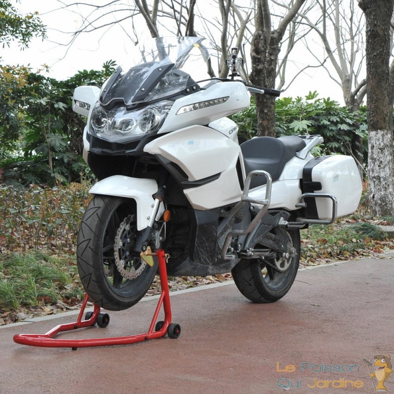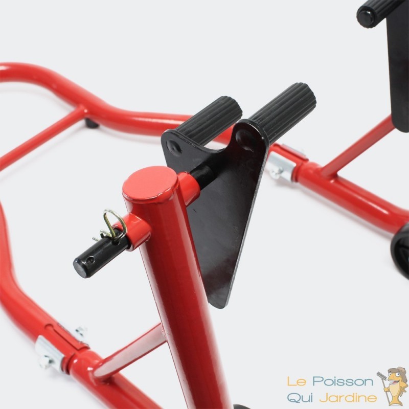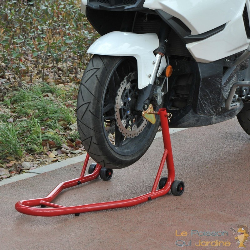 Idéal pour le placement des couvertures chauffantes ou pour l'entretien de la moto par exemple, lors du remplacement des plaquettes ou disques de frein ou encore le changement de pneu avant.