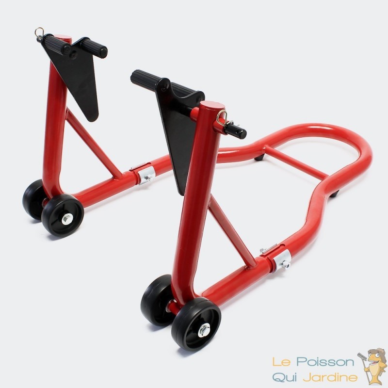 - 4 roulettes ( le fait qu'il y ait 4 roulettes augment la stabilité au moment ou vous positionner la béquille sous la moto