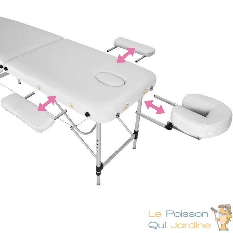 L'un des avantages de cette table de massage est son appui-tête multifonctionnel, qui peut être ajusté pour s'adapter à différentes positions de massage et garantir un alignement adéquat de la colonne vertébrale. Les accoudoirs sont également réglables en hauteur, ce qui permet d'adapter la table en fonction des préférences individuelles et des besoins spécifiques du masseur et du client.