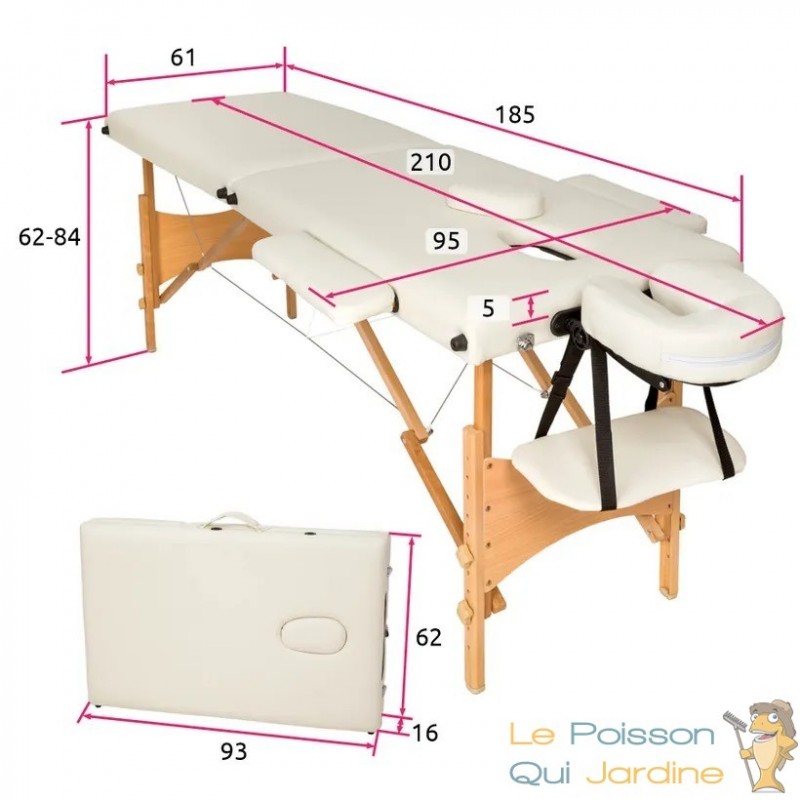 Son revêtement en vinyle résistant à l'eau et à l'huile garantit une durabilité exceptionnelle et facilite le nettoyage. Vous pouvez l'adapter facilement et rapidement à vos besoins grâce à ses réglages de hauteur, de jambes, de cou et de bras. La cavité amovible pour le visage offre un confort supplémentaire lors des séances de massage.