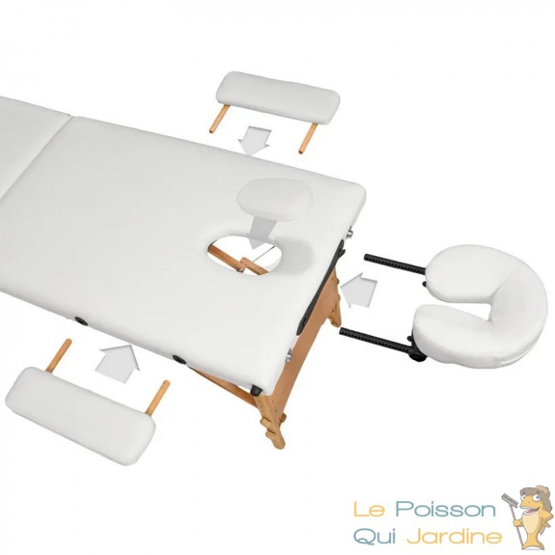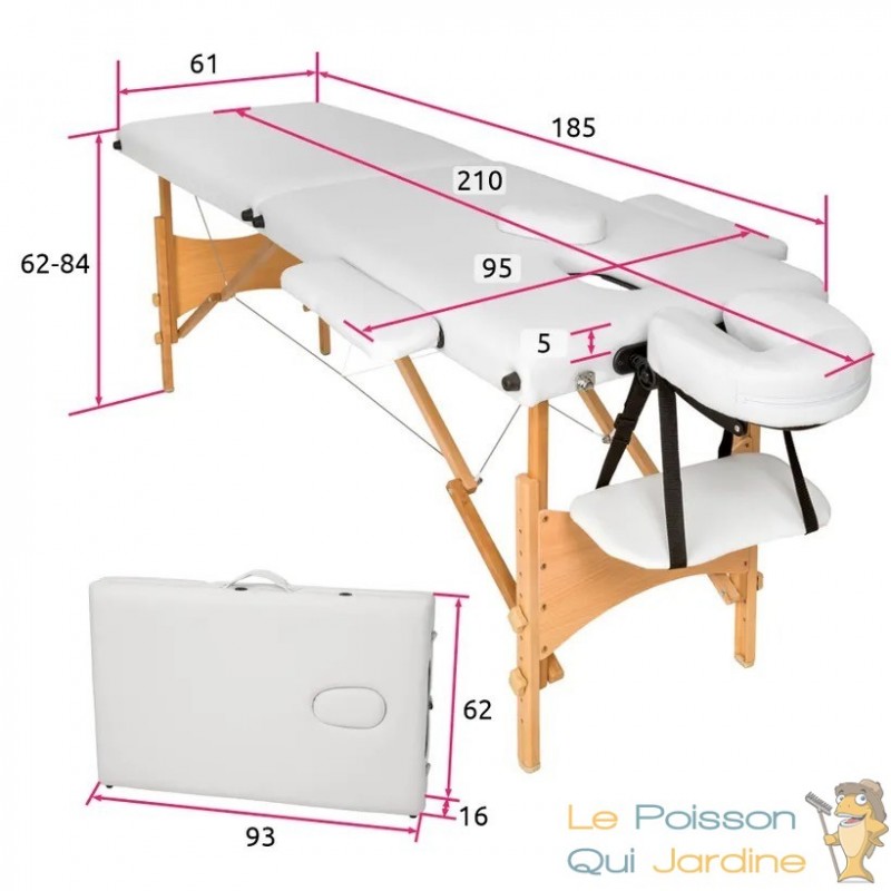 Son revêtement en vinyle résistant à l'eau et à l'huile garantit une durabilité exceptionnelle et facilite le nettoyage. Vous pouvez l'adapter facilement et rapidement à vos besoins grâce à ses réglages de hauteur, de jambes, de cou et de bras. La cavité amovible pour le visage offre un confort supplémentaire lors des séances de massage.