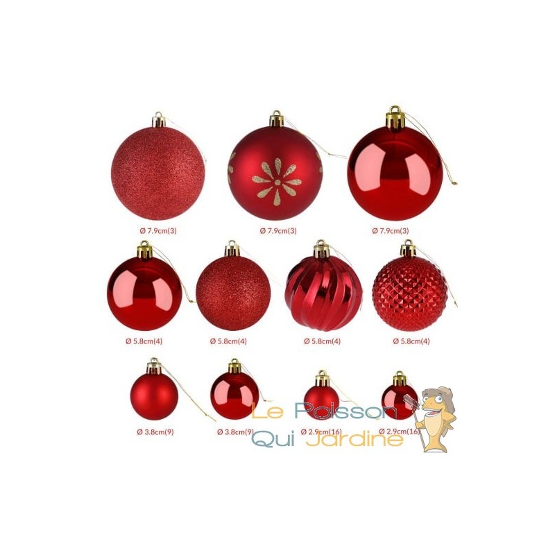 - 16 boules / Ø 6cm + 18 boules / Ø 4cm + 9 boules / Ø 8cm + 32boules / Ø 3cm
