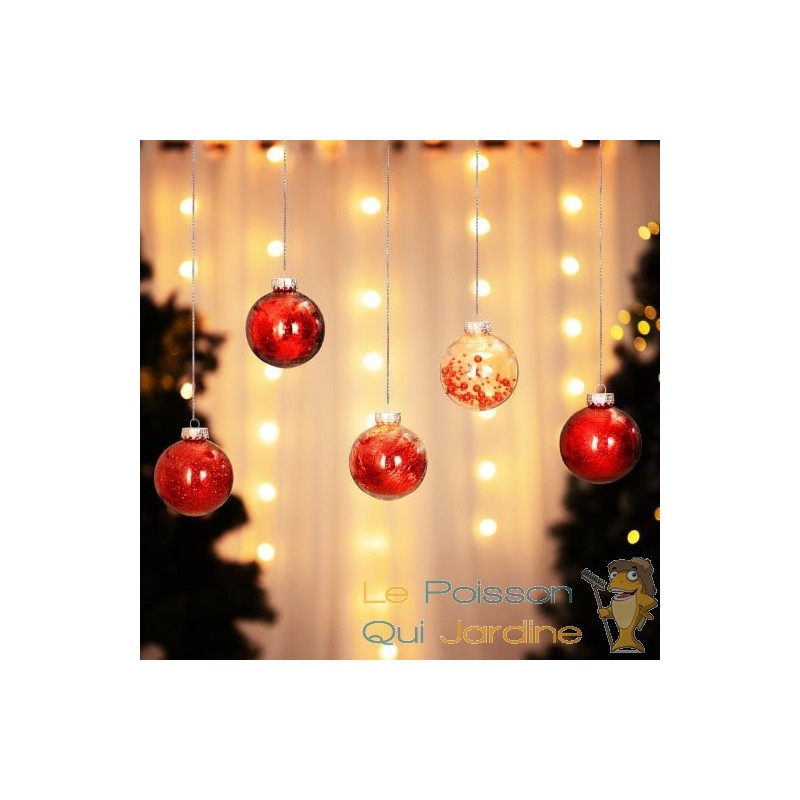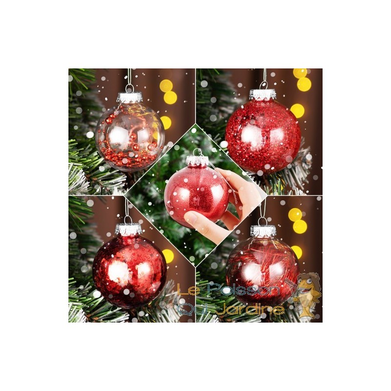 Décoration : Les boules de Noël sont décorées de diverses manières. Les plus courantes sont celles recouvertes de paillettes, de peintures brillantes et de motifs festifs. Les boules de Noël en verre peuvent également être transparentes ou dépolies, ce qui permet de voir l'intérieur ou de créer un effet de givre.