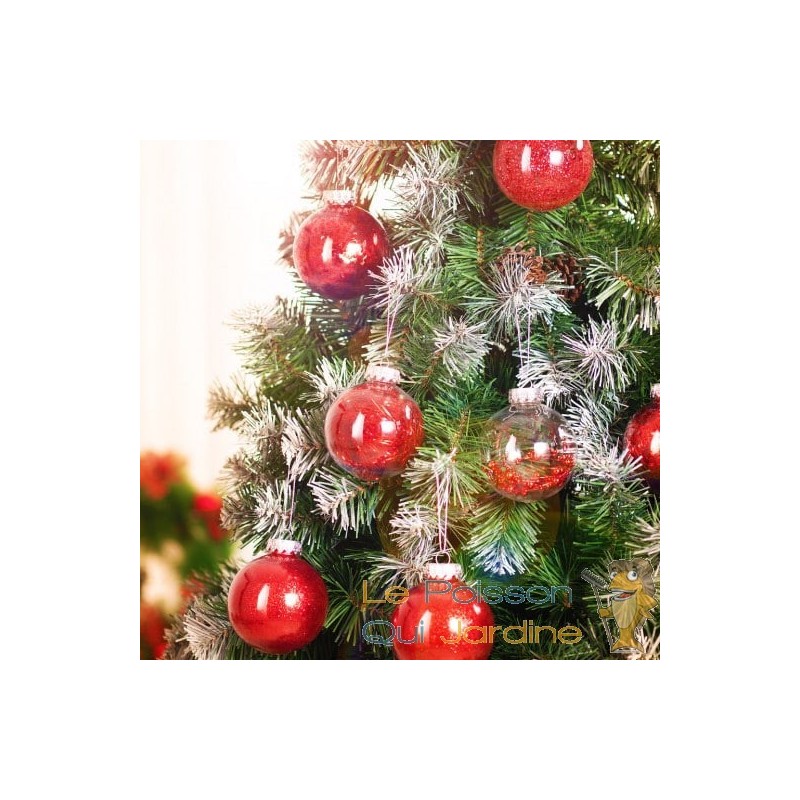 Décoration : Les boules de Noël sont décorées de diverses manières. Les plus courantes sont celles recouvertes de paillettes, de peintures brillantes et de motifs festifs. Les boules de Noël en verre peuvent également être transparentes ou dépolies, ce qui permet de voir l'intérieur ou de créer un effet de givre.