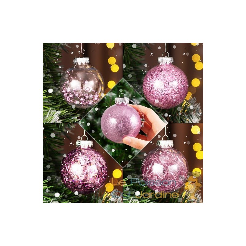 Décoration : Les boules de Noël sont décorées de diverses manières. Les plus courantes sont celles recouvertes de paillettes, de peintures brillantes et de motifs festifs. Les boules de Noël en verre peuvent également être transparentes ou dépolies, ce qui permet de voir l'intérieur ou de créer un effet de givre.