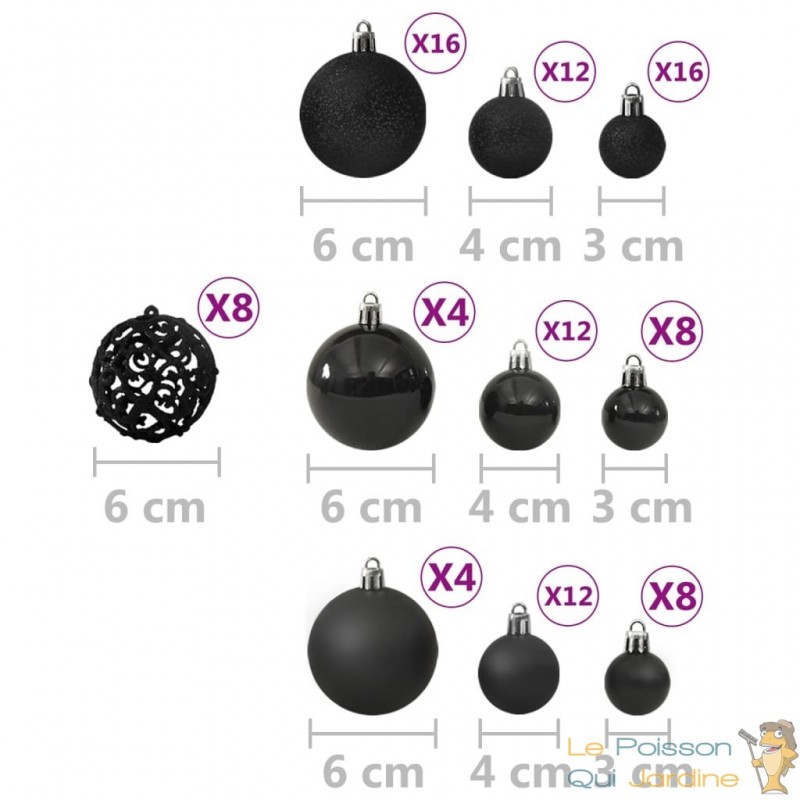 Variété de Styles et de Designs : Les ensembles de boules de Noël offrent une grande diversité de styles, des traditionnels aux contemporains, des élégants aux ludiques. Vous pouvez choisir des boules ornées de motifs classiques tels que des flocons de neige, des sapins ou des étoiles, ou opter pour des designs plus modernes et originaux.