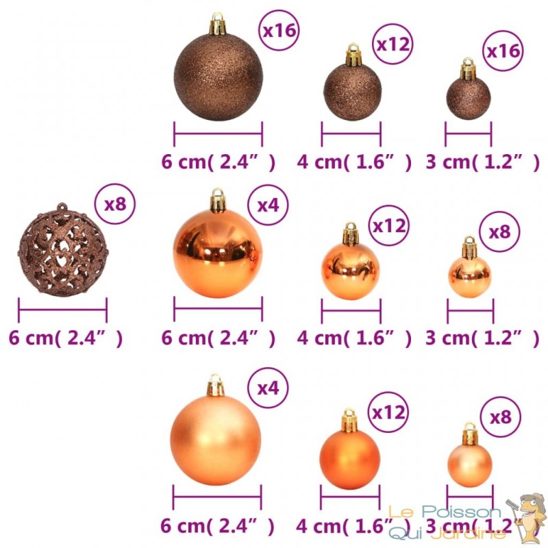 Variété de Styles et de Designs : Les ensembles de boules de Noël offrent une grande diversité de styles, des traditionnels aux contemporains, des élégants aux ludiques. Vous pouvez choisir des boules ornées de motifs classiques tels que des flocons de neige, des sapins ou des étoiles, ou opter pour des designs plus modernes et originaux.