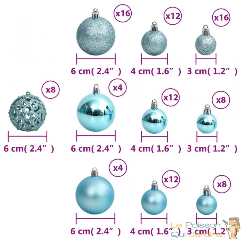 Variété de Styles et de Designs : Les ensembles de boules de Noël offrent une grande diversité de styles, des traditionnels aux contemporains, des élégants aux ludiques. Vous pouvez choisir des boules ornées de motifs classiques tels que des flocons de neige, des sapins ou des étoiles, ou opter pour des designs plus modernes et originaux.