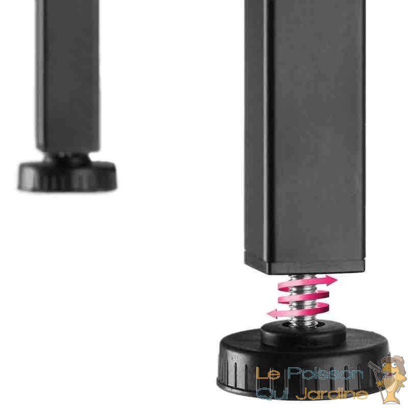 La structure du bureau est fabriquée avec des panneaux MDF d'une épaisseur d'environ 1,5 cm, qui allient robustesse et durabilité. Le support en acier mesure environ 2 x 2 cm, assurant une stabilité fiable. Les pieds en plastique sont réglables d'environ 1,5 cm, permettant d'ajuster la hauteur du bureau selon vos préférences.