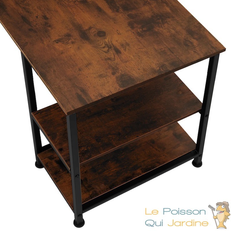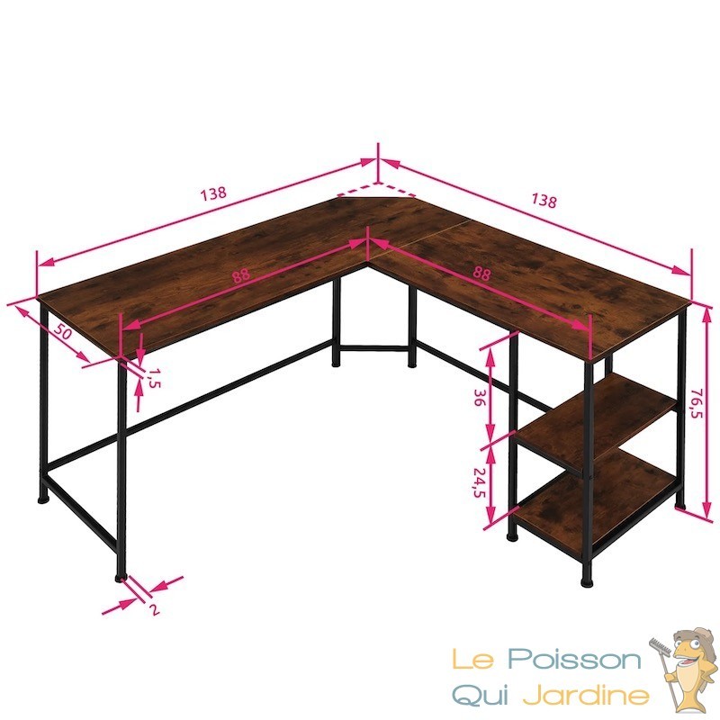 En résumé, le bureau rustique de dimensions 138x138x75,5 cm est le choix idéal pour ceux qui recherchent un meuble de travail alliant style industriel et fonctionnalité. Son design pratique en L, ses étagères latérales, sa solidité et sa facilité d'entretien en font un choix judicieux pour créer un espace de travail organisé et inspirant.