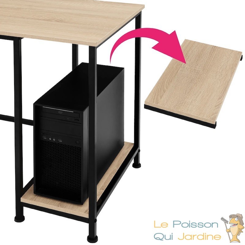 Outre sa fonctionnalité, ce bureau se distingue par sa qualité de fabrication. Les matériaux utilisés, tels que le bois et l'acier, garantissent une solidité et une durabilité optimales. Le piètement en acier revêtu de noir offre une stabilité remarquable, tandis que les surfaces en bois ajoutent une touche chaleureuse et naturelle à l'ensemble.
