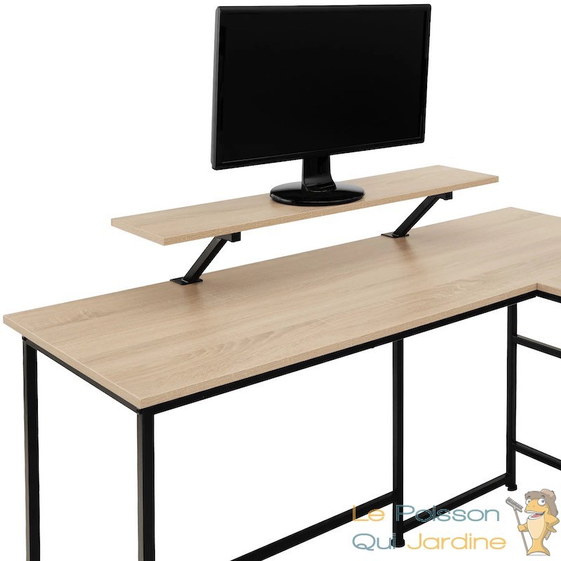 Le bureau est doté d'un support d'écran d'environ 90 x 20 x 15,5 cm, offrant un espace pratique pour placer votre écran et optimiser votre configuration de travail. Cette fonctionnalité vous permet de maintenir un espace de travail organisé et dégagé.