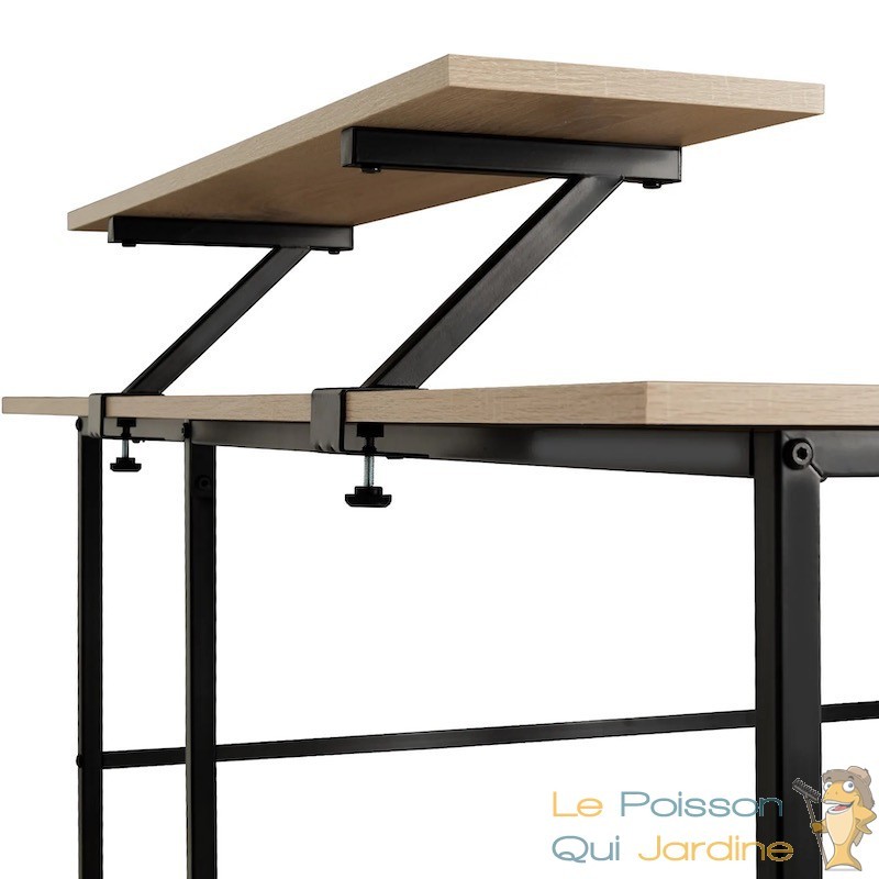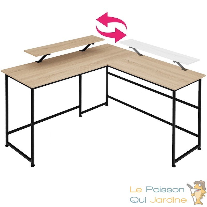 En résumé, le bureau d'angle offre un mélange harmonieux entre esthétisme, fonctionnalité et durabilité. Son style industriel épuré, sa construction pratique et ses matériaux de qualité en font un choix idéal pour créer un espace de travail inspirant et efficace.