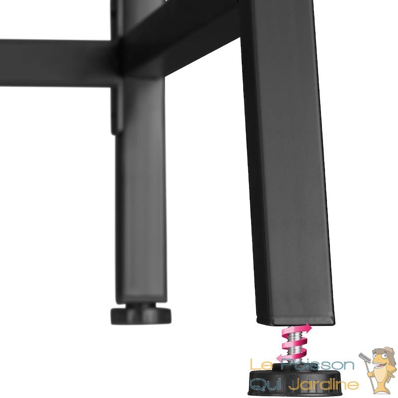 Les pieds en plastique réglables en hauteur ajoutent une touche de polyvalence en permettant un ajustement précis sur différentes surfaces de sol. Cette fonctionnalité garantit non seulement une stabilité optimale, mais offre également la possibilité de personnaliser la hauteur du bureau selon vos préférences ergonomiques.