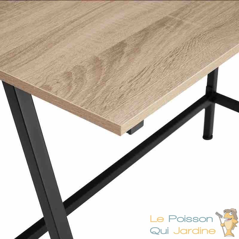 Le bureau est fabriqué avec un panneau de particules d'une épaisseur d'environ 1,5 cm, assurant ainsi sa robustesse et sa durabilité. Cette construction solide garantit que le bureau peut résister à une utilisation quotidienne tout en conservant son intégrité structurelle au fil du temps. Vous pouvez compter sur ce panneau de particules pour offrir une surface de travail stable et résistante, répondant à vos besoins professionnels ou personnels avec fiabilité.