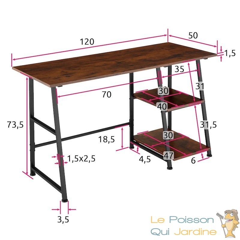 Ce bureau a été méticuleusement conçu pour harmoniser fonctionnalité et esthétique, offrant ainsi une solution complète pour votre espace de travail. Fabriqué à partir de matériaux de haute qualité, tels que l'acier robuste et le bois, il garantit une durabilité à long terme, résistant ainsi à l'usure quotidienne et aux épreuves du temps. Cette combinaison de matériaux de qualité assure également une esthétique élégante et moderne, ajoutant une touche de sophistication à votre bureau.