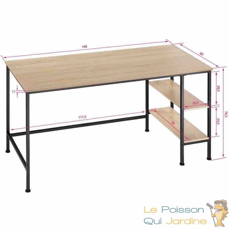 Le bureau est un choix parfait pour les amateurs du style industriel élégant. Avec sa conception sobre et fonctionnelle, il offre un grand espace de rangement pour répondre à vos besoins organisationnels. L'étagère latérale et ses deux compartiments peuvent être montés à gauche ou à droite, vous permettant ainsi de personnaliser l'agencement selon vos préférences.