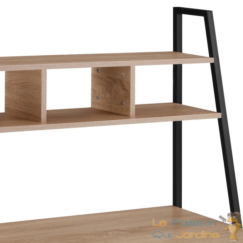 La table de travail est non seulement esthétiquement agréable, mais aussi fonctionnelle. Elle est dotée d'un plan de travail bien organisé, offrant amplement d'espace pour votre ordinateur portable, vos documents et autres accessoires de travail. Les compartiments de rangement pratiques vous permettent de garder vos fournitures à portée de main, tandis que l'étagère supérieure offre un espace supplémentaire pour exposer des objets décoratifs ou ranger des livres.