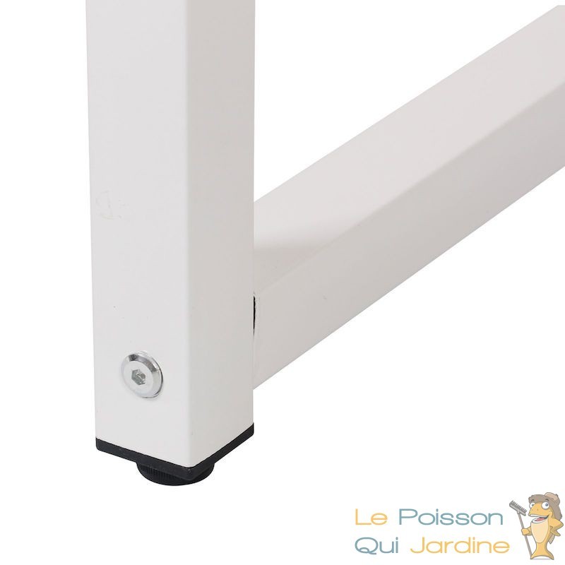La facilité d'assemblage de la table garantit une mise en place rapide sans complications inutiles. Les dimensions généreuses offrent une surface spacieuse pour répondre à divers besoins, que ce soit pour des tâches professionnelles, des sessions d'étude ou des repas. Les pieds ajustables ajoutent une fonctionnalité supplémentaire en permettant une adaptation aux petites inégalités du sol, assurant ainsi une stabilité optimale, même sur des surfaces moins régulières.