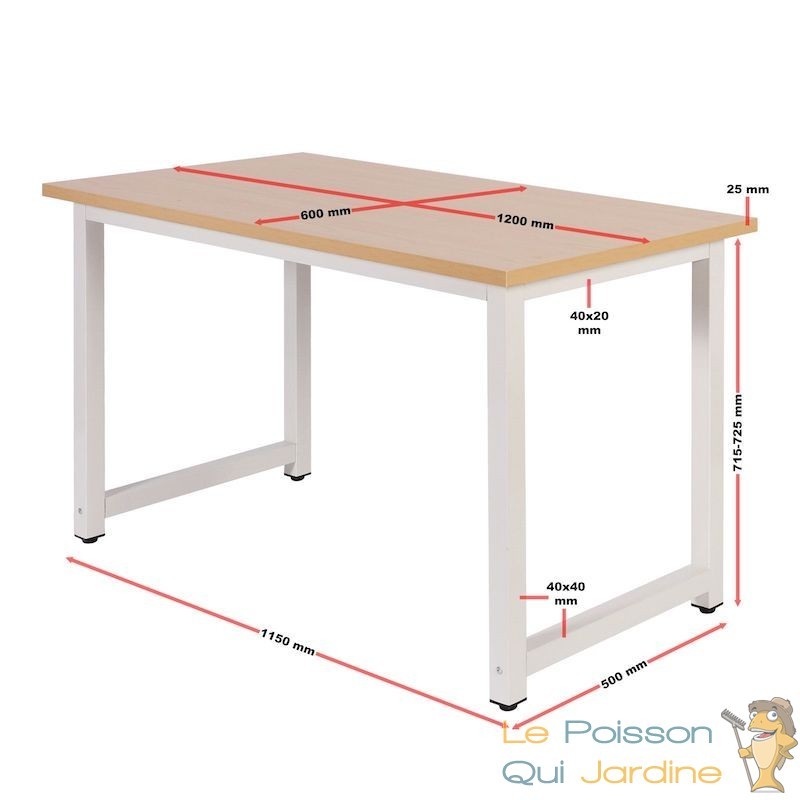 L'assemblage de la table est rapide et simple. Ses dimensions généreuses de 120 x 60 x 70 cm offrent amplement d'espace pour travailler, étudier ou manger sans vous sentir restreint. De plus, les pieds de la table sont ajustables pour compenser les petites inégalités du sol, assurant une stabilité optimale.
