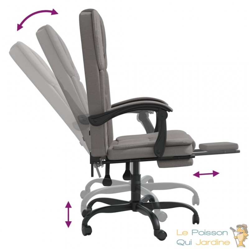 Dossier et hauteur réglables : Conçu avec soin, ce fauteuil offre une fonction d'inclinaison, permettant un ajustement personnalisé du dossier et du repose-pied pour un confort optimal. Le levier de réglage de la hauteur du siège permet une adaptation précise à vos préférences.