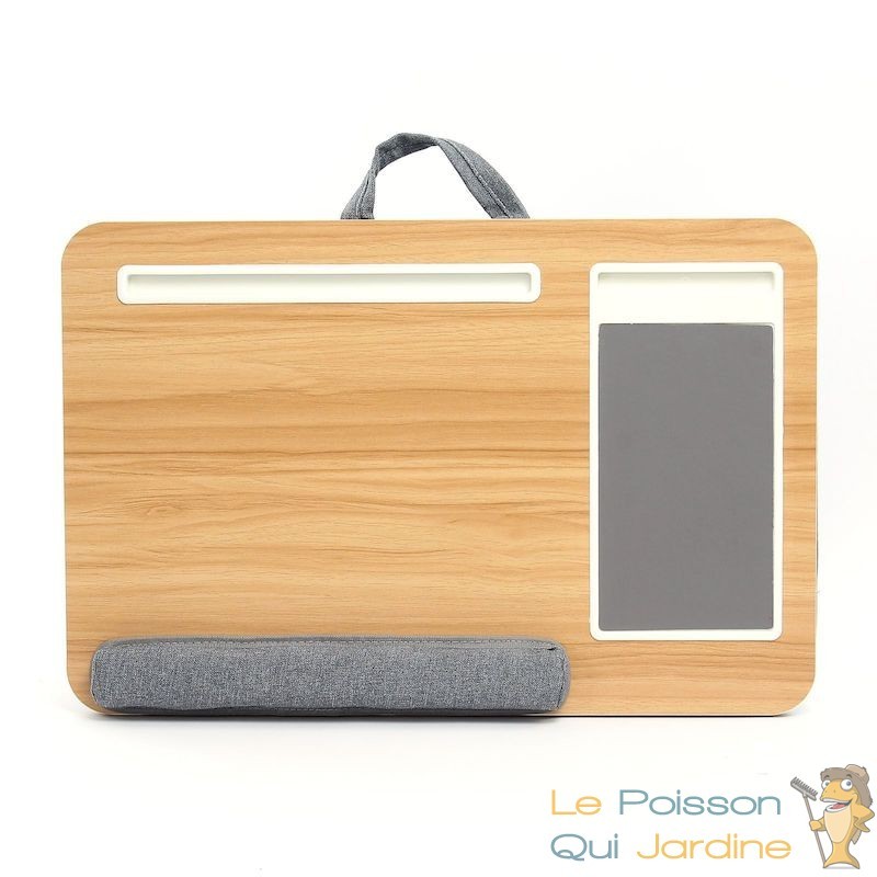 Dans ce monde en constante évolution, notre interaction avec la technologie s'est transformée. Avec une augmentation significative du temps passé à la maison, que ce soit pour travailler ou se divertir, il est crucial de créer un environnement confortable et efficace. C'est pourquoi nous vous présentons le Plateau pour Ordinateur Portable Effet Bois 55x36x8cm avec un Coussin intégré.