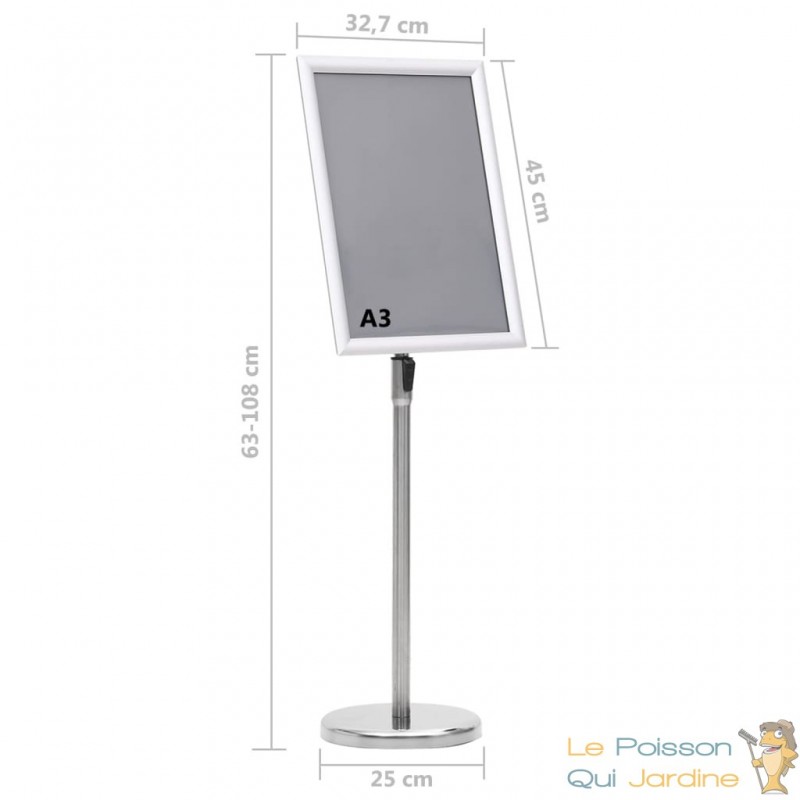 Montage et entretien de ce support sont simples, en faisant le choix parfait pour les salons, magasins, collections, événements ou expositions. Faites de ce présentoir à affiche un partenaire fiable pour mettre en valeur vos messages publicitaires de manière élégante et professionnelle.