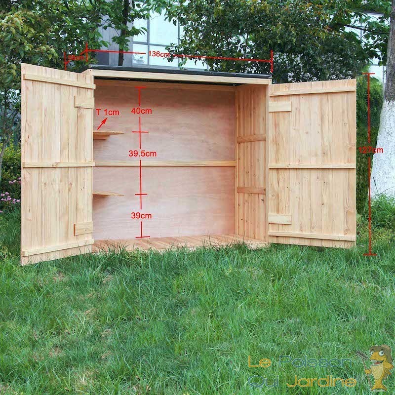Avec des dimensions généreuses, cette armoire offre amplement d'espace pour répondre à vos besoins en matière de rangement. Son design soigné et son bois naturel apportent une esthétique chaleureuse à votre jardin, créant un environnement accueillant et organisé.