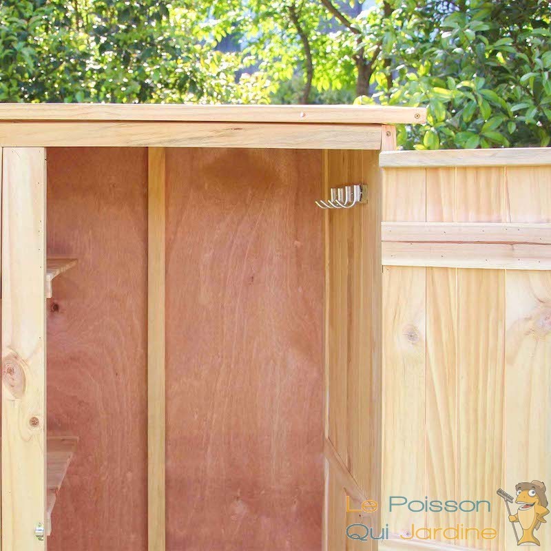 En résumé, cette armoire de jardin en bois naturel combine sécurité, fonctionnalité et esthétique, en offrant une solution de rangement idéale pour vos outils et fournitures de jardin. Son design élégant et sa construction solide en font un ajout précieux à tout espace extérieur.