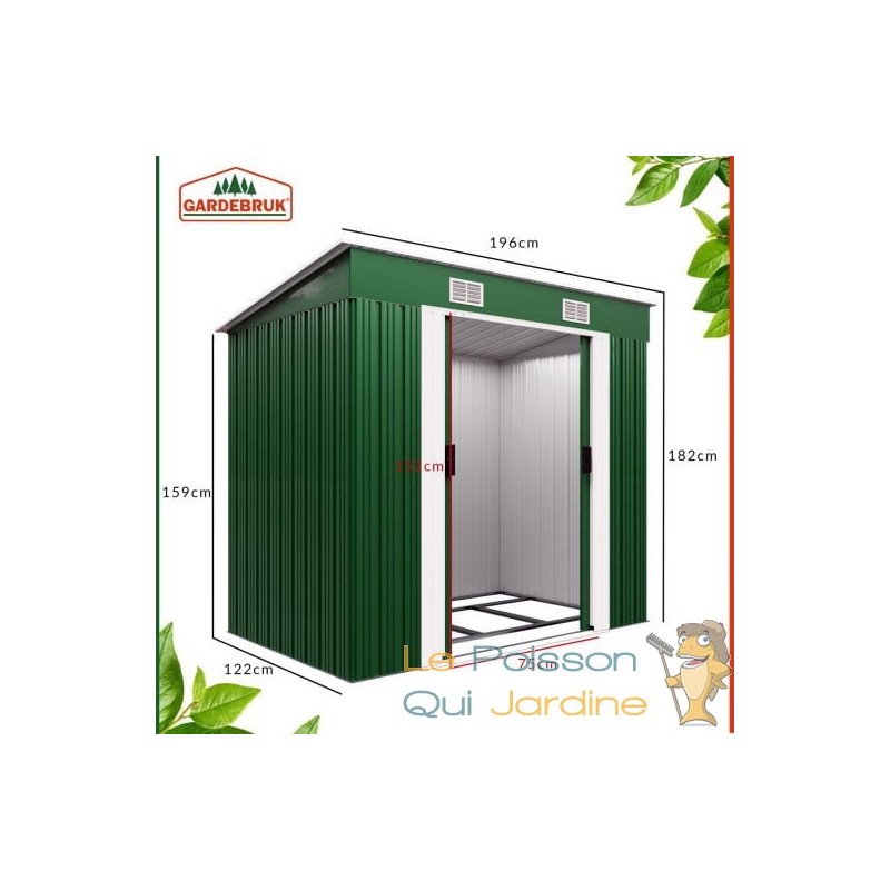 - Dimensions totales avec toit (LxPxH) : 196 x 122 x 182 cm