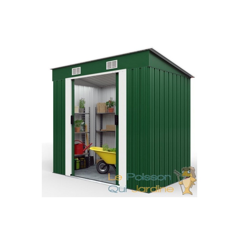 L'abri est équipé d'une porte coulissante qui facilite grandement l'accès à vos biens stockés. Vous pouvez donc rapidement trouver ce dont vous avez besoin sans tracas. De plus, les grilles de ventilation situées sur le toit assurent une circulation d'air adéquate à l'intérieur de l'abri, ce qui est essentiel pour éviter l'humidité et la condensation qui pourraient endommager vos objets.